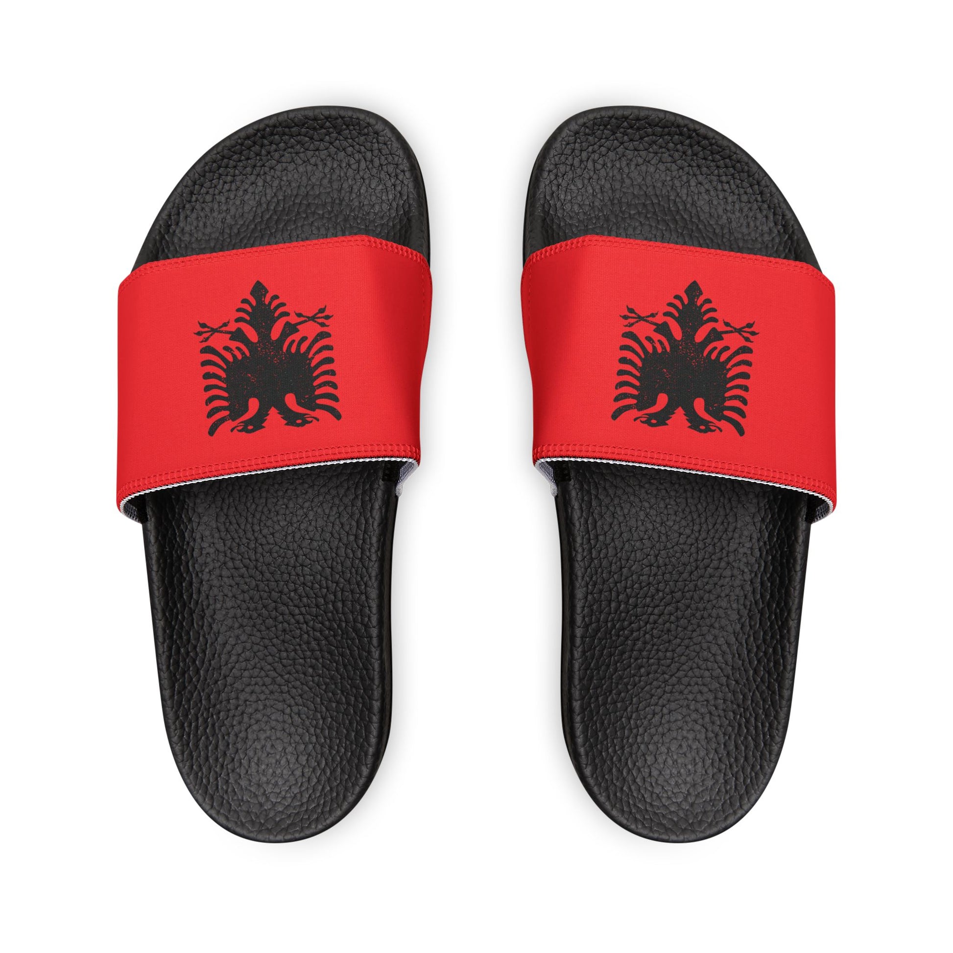 Let young shqiptares step into summer with pride and comfort! These Albanian Eagle Youth Sandals feature a bold double-headed eagle design and a smart removable-strap option for easy wear and versatility. Whether they’re heading to the pool, the playground, or a family outing, these sandals are built for fun and freedom.