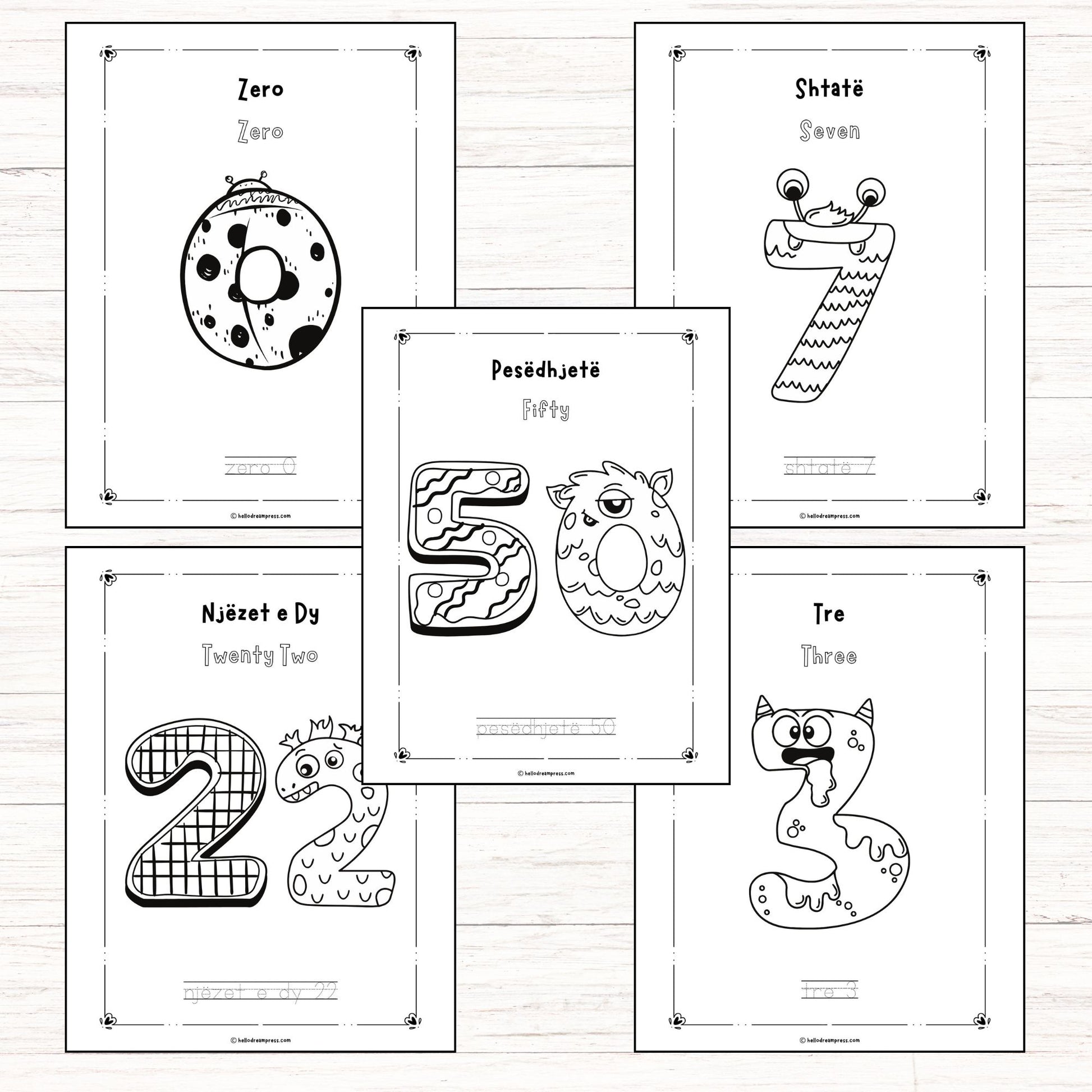 Albanian English 0–50 Numbers Coloring Pages: Learn and Color With Fun!