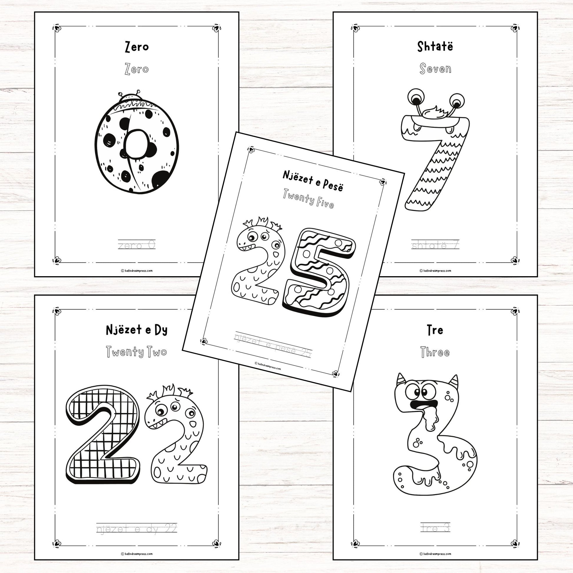Albanian English Coloring Pages: Numbers 0–25 I DIGITAL DOWNLOAD I 26 PAGES