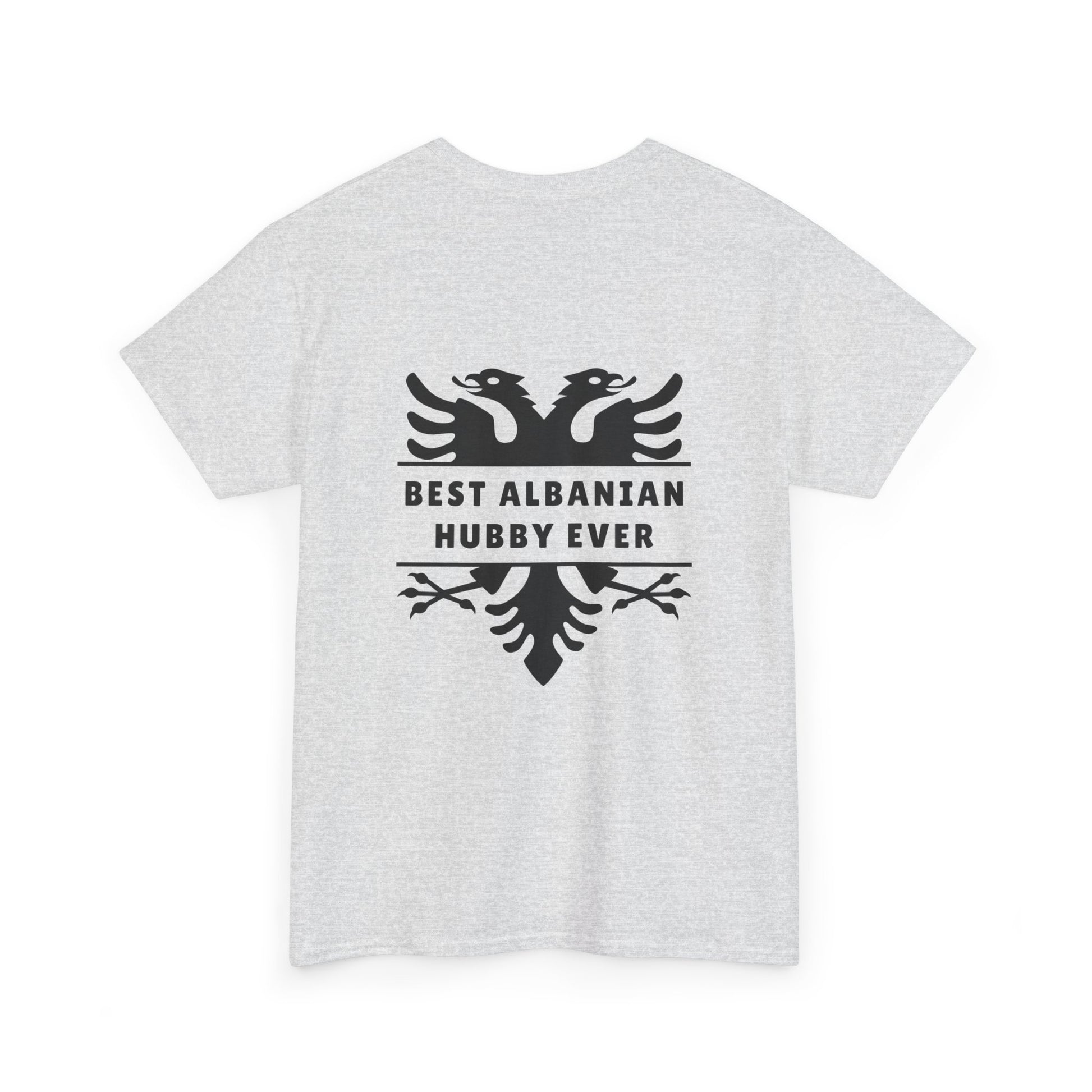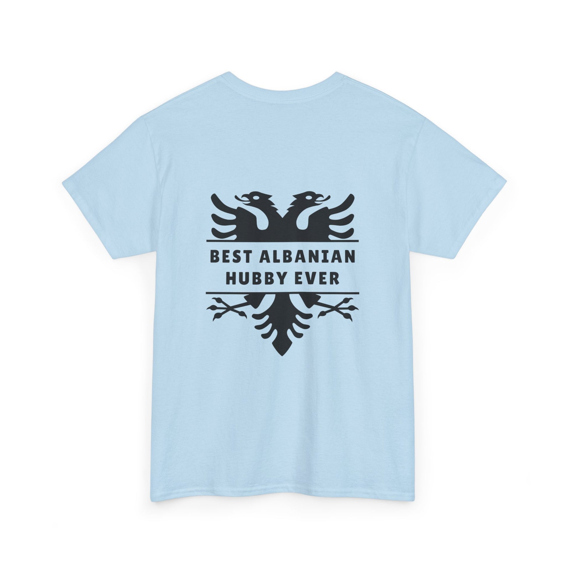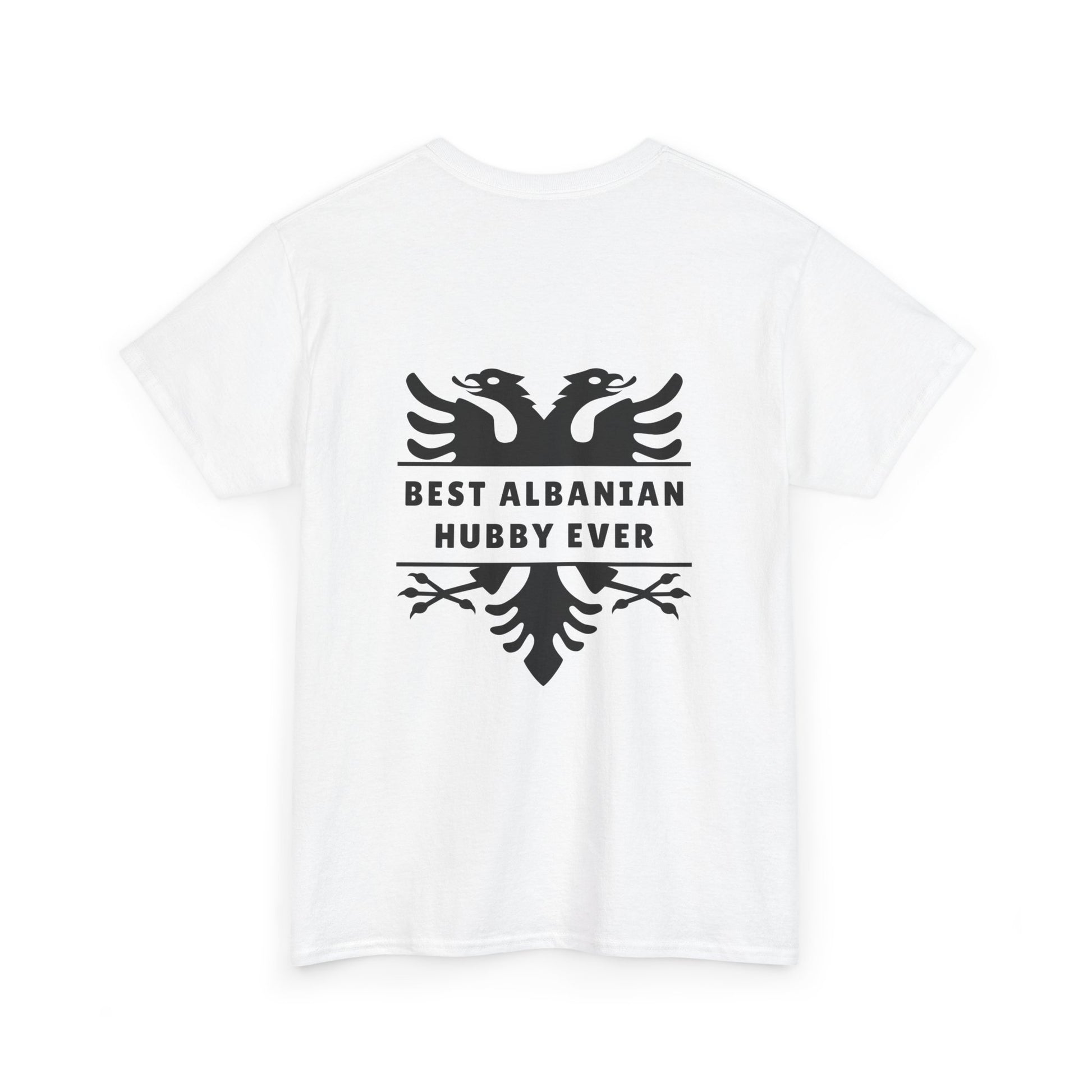 Best Albanian Hubby Ever – Heavy Cotton T-Shirt Dual-Sided Design | Bold Albanian Eagle on Back | Gift for Husbands | Patriotic Apparel