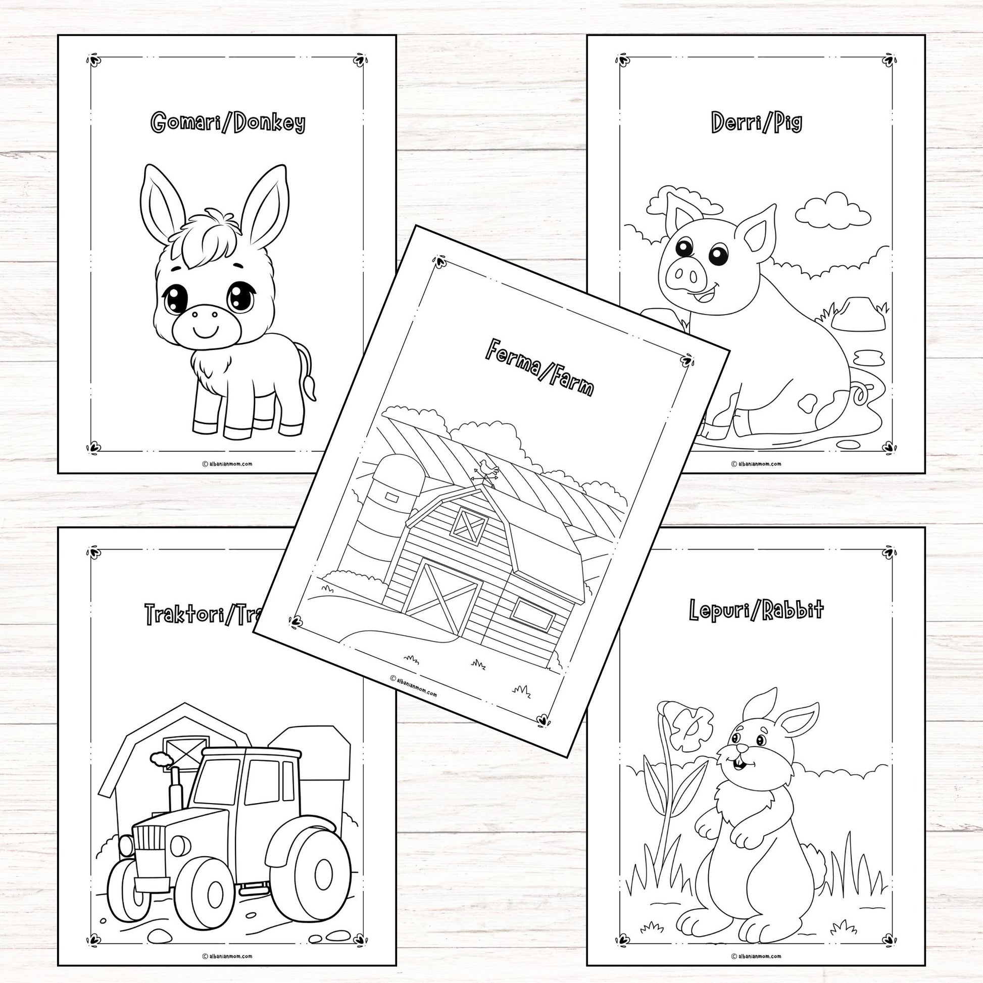 Let your child explore the farmyard with crayons in hand—while learning in two languages with Color the Farm – Ngjyros Fermën today!