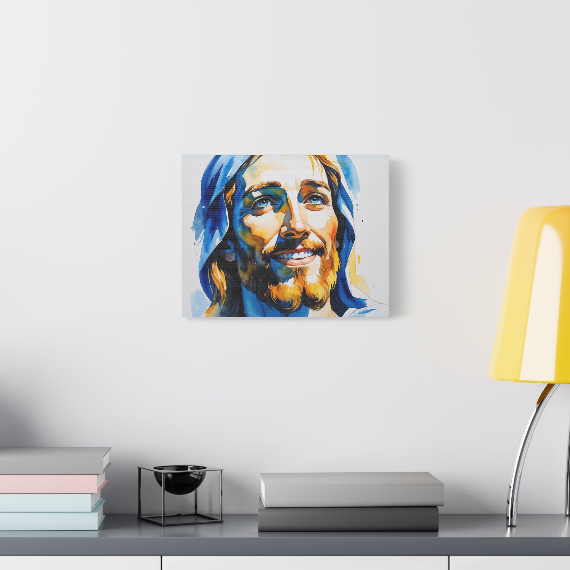 Joyful Light: Jesus Christ in Kosovo’s Colors – Watercolor Style Portrait Matte Canvas Wall Art