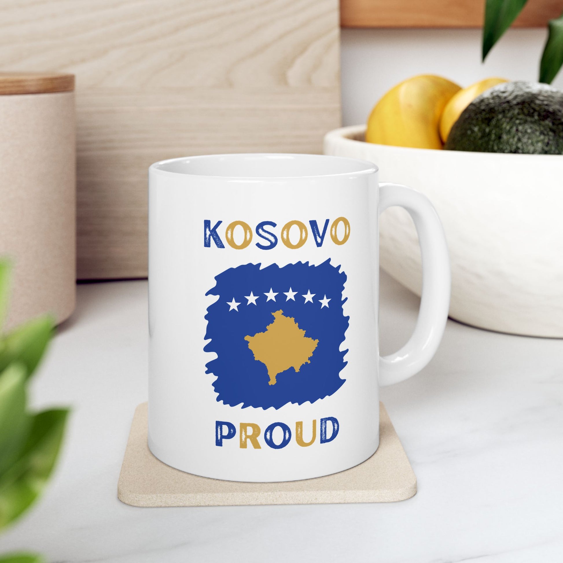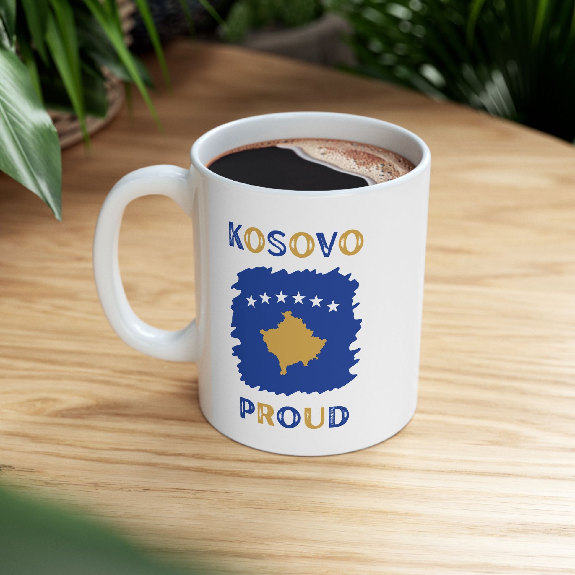 Kosovo Proud Mug – 11oz Ceramic Cup | Yellow & Blue Flag Design for Everyday Pride, Gift Giving & Cultural Celebrations