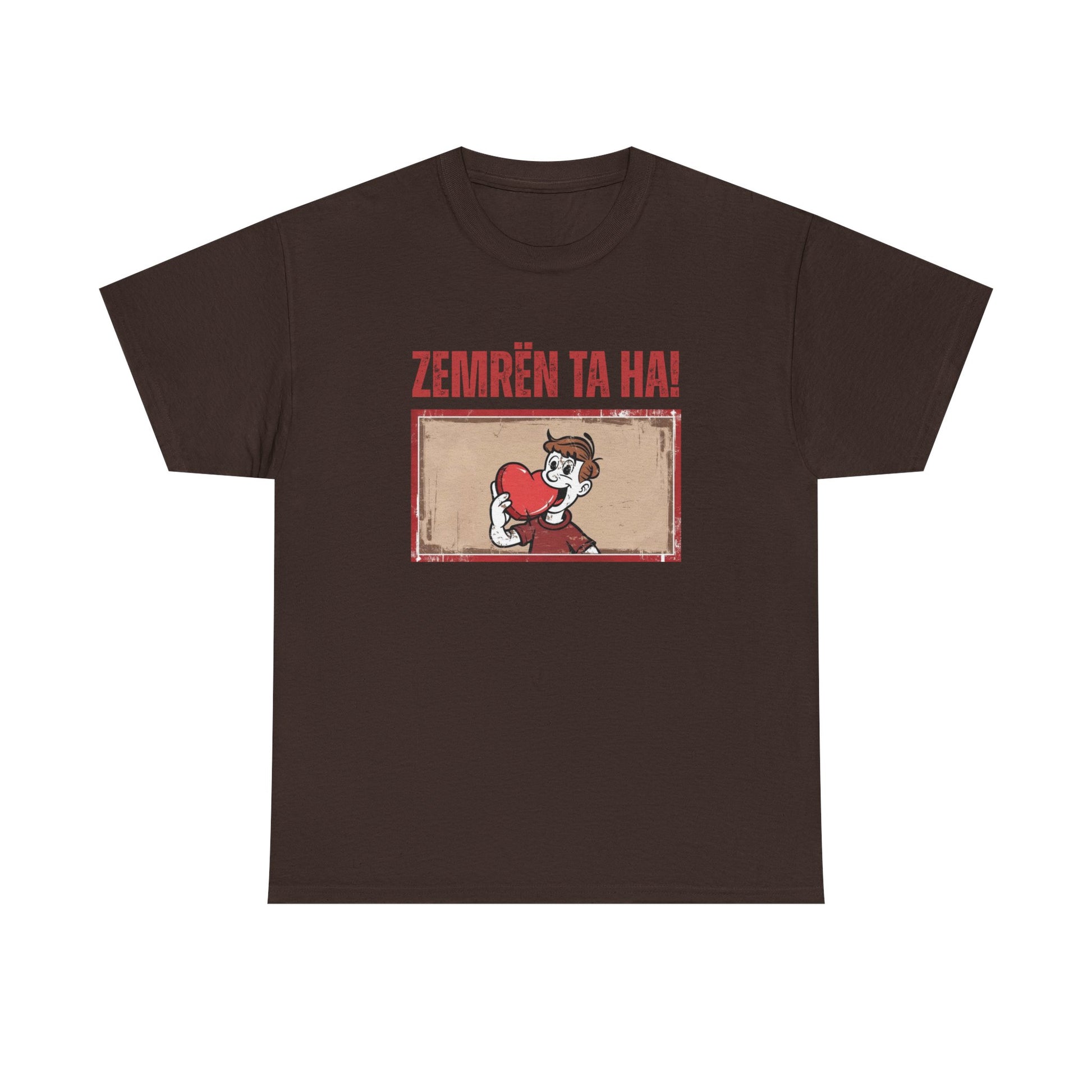 Zemrën Ta Ha! – Unisex Cartoon Heart Tee | Funny Albanian Graphic Shirt for Love, Laughs & Everyday Wear